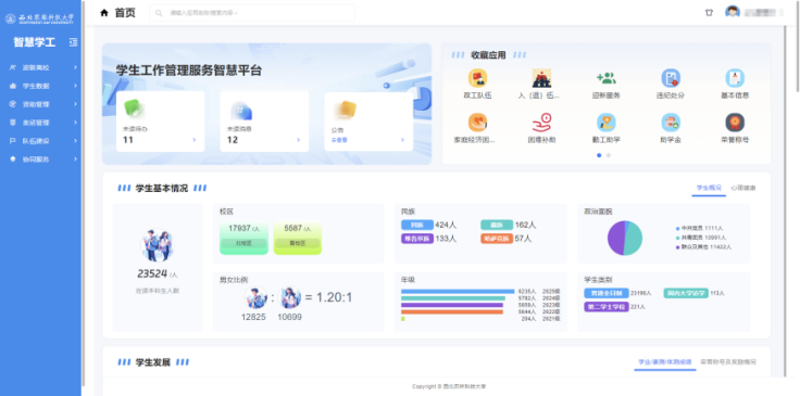 为深入贯彻落实学校信息化建设整体部署,进一步提升学生管理服务效能,学校于2025年对原有学工系统进行了全面升级,同步将服务器升级换新,并基于业务数据资源整合开发了“学生数据看板”模块。