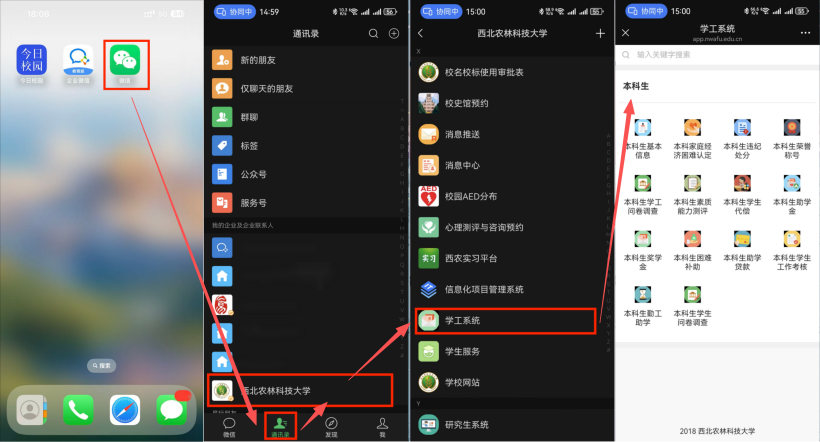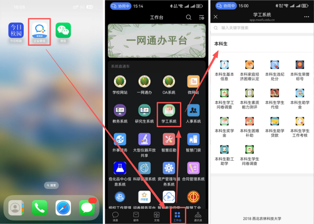 移动端:可通过“今日校园”APP、微信APP内的“企业微信号”或“企业微信”APP三类平台访问。