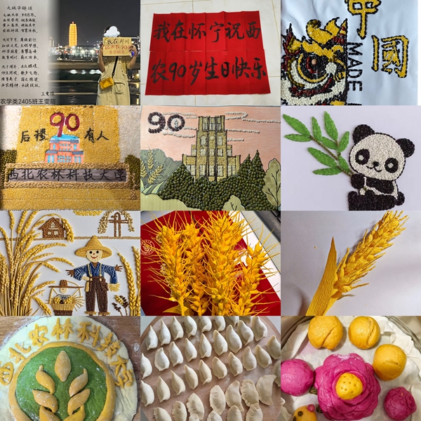 一张图片,表达“麦”心。学院以学校90周年校庆为契机,积极引导新生快速融入校庆文化。动员新生以家乡的标志性建筑为背景,手持祝福牌,拍下创意图片,通过“我在家乡送祝福”创意拍照打卡活动,表达新生对西农的热爱与祝福,增强新生爱校意识和爱校情怀。动员新生通过书法、手绘、创意诗歌等形式为校庆献上美好祝福,帮助新生更好地接触和感受学校文化积淀,增强校园凝聚力和归属感,通过艺术作品传递出积极能量,激发新生对校庆活动的期待和参与热情,营造浓厚的校庆氛围。